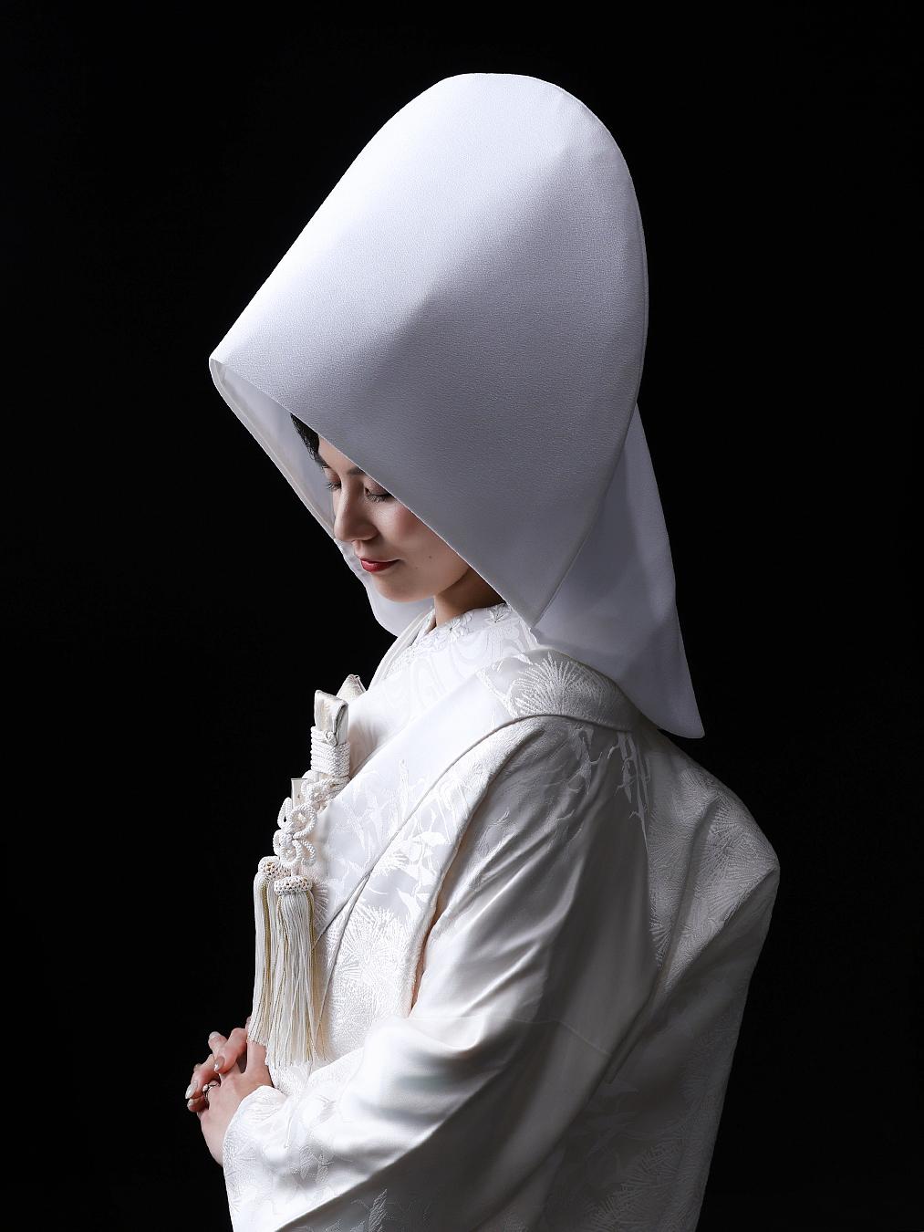花嫁の象徴「文金高島田」江戸時代から受け継がれてきた最も格式高い花嫁髷。カツラなら、髪の長さ・量を問わず、理想のシルエットをすべての方に。心に残る、特別な変身体験プロの熟練技で仕上げる本格かつら。普段とはまったく違う「嫁ぎの美」が一生の思い出に。負担なく、ストレスフリーで完成地毛結いに比べて短時間・無痛で、美しい仕上がりが長時間キープ。頭皮への負担や技術的な制約がありません。伝統小物も正式にコーディネート綿帽子や角隠しが映える設計で、和の「品格」と「清楚」を最大限に。